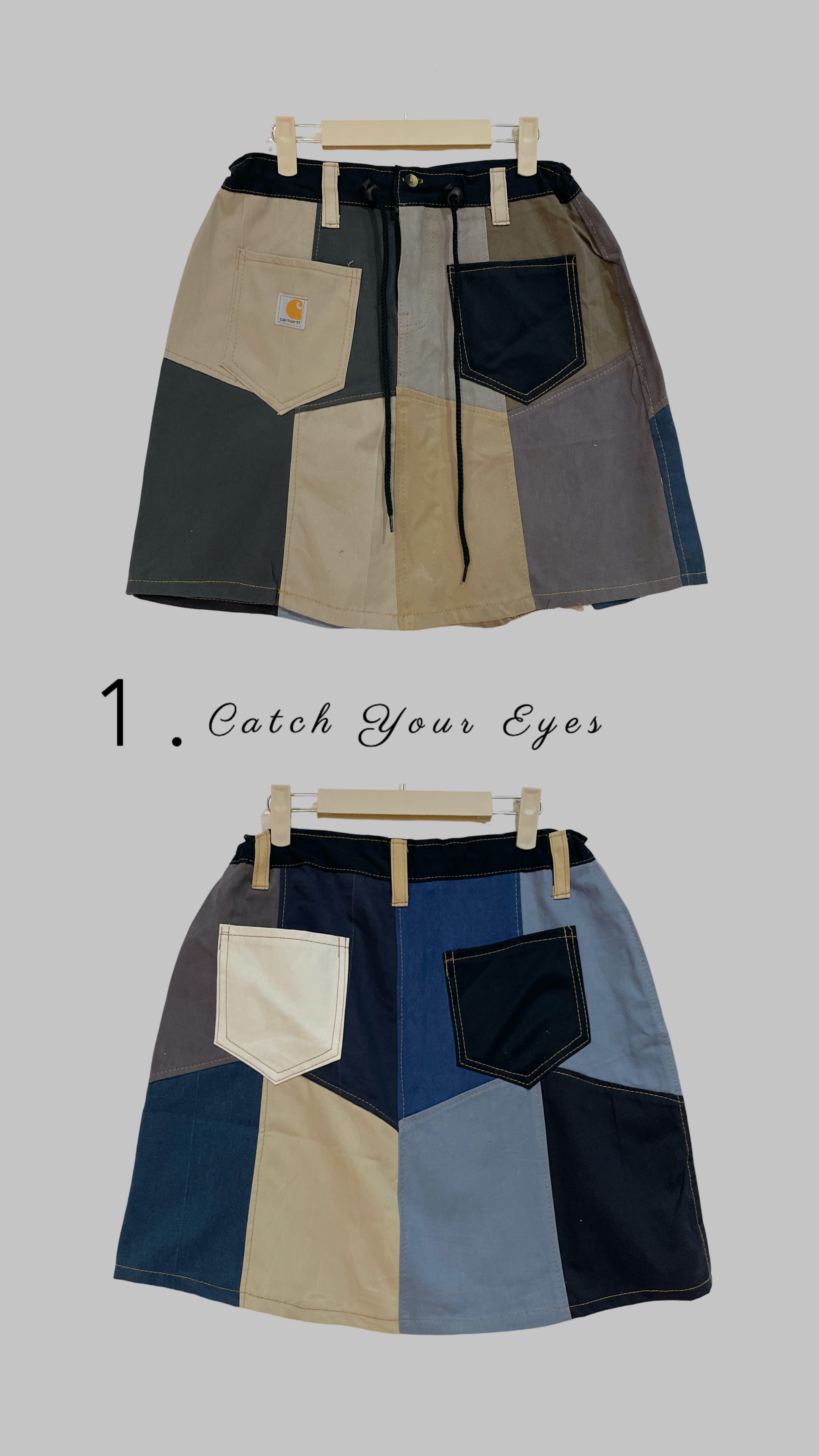 ✿眨眼有電✿ {M0012} 多款-remake carhartt拼色抽繩短裙