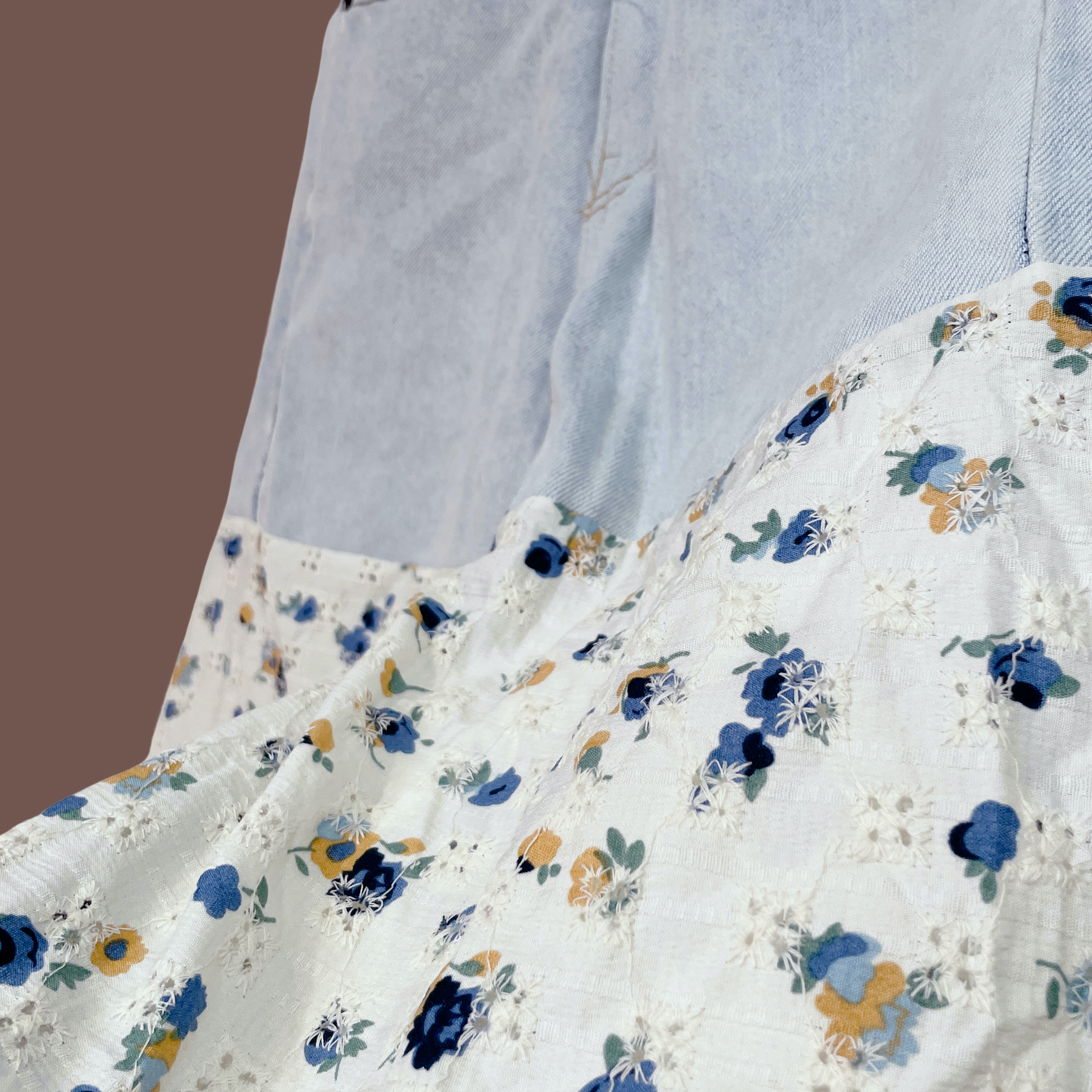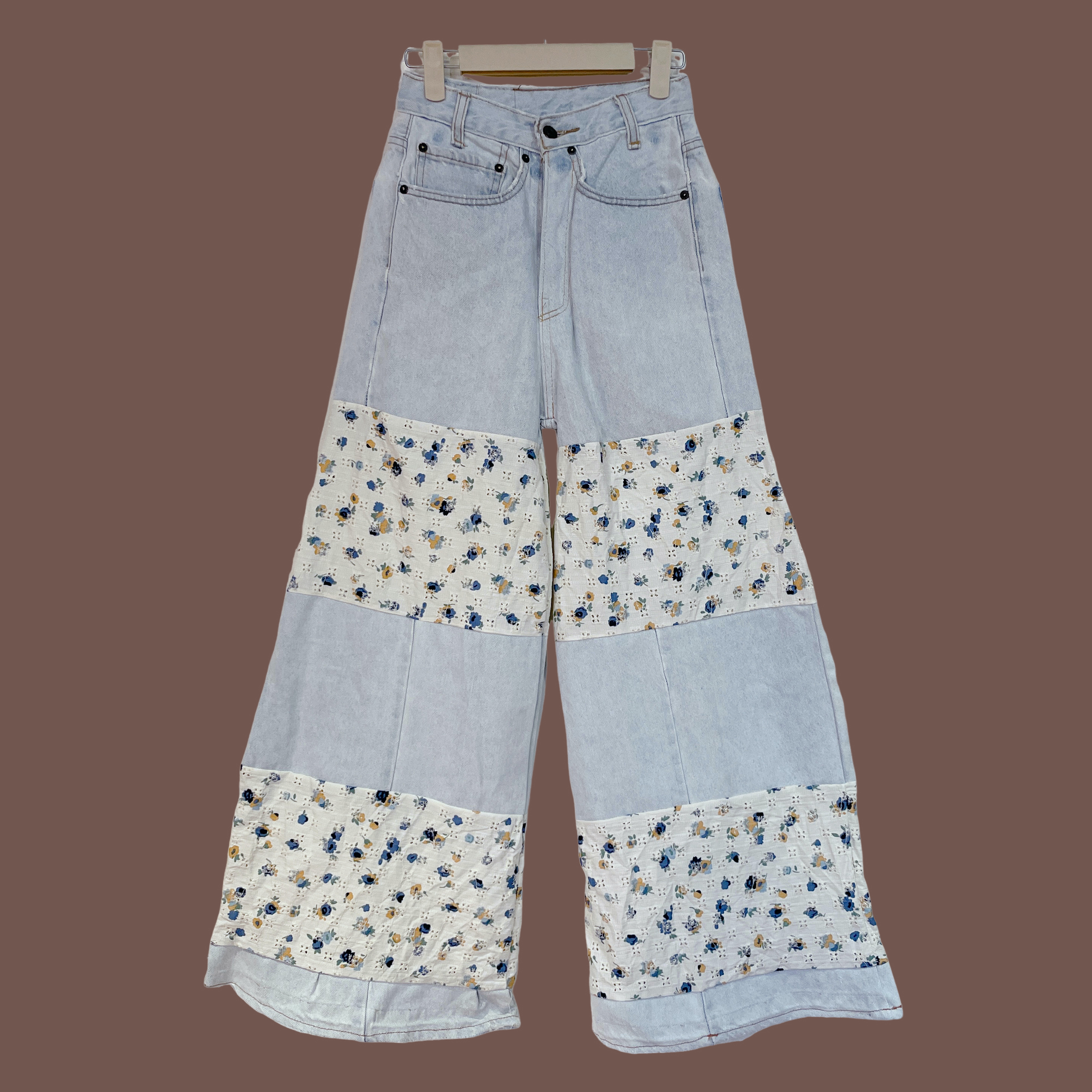 ✿眨眼有電✿ {M0139} 異材質幾何拼接牛仔褲