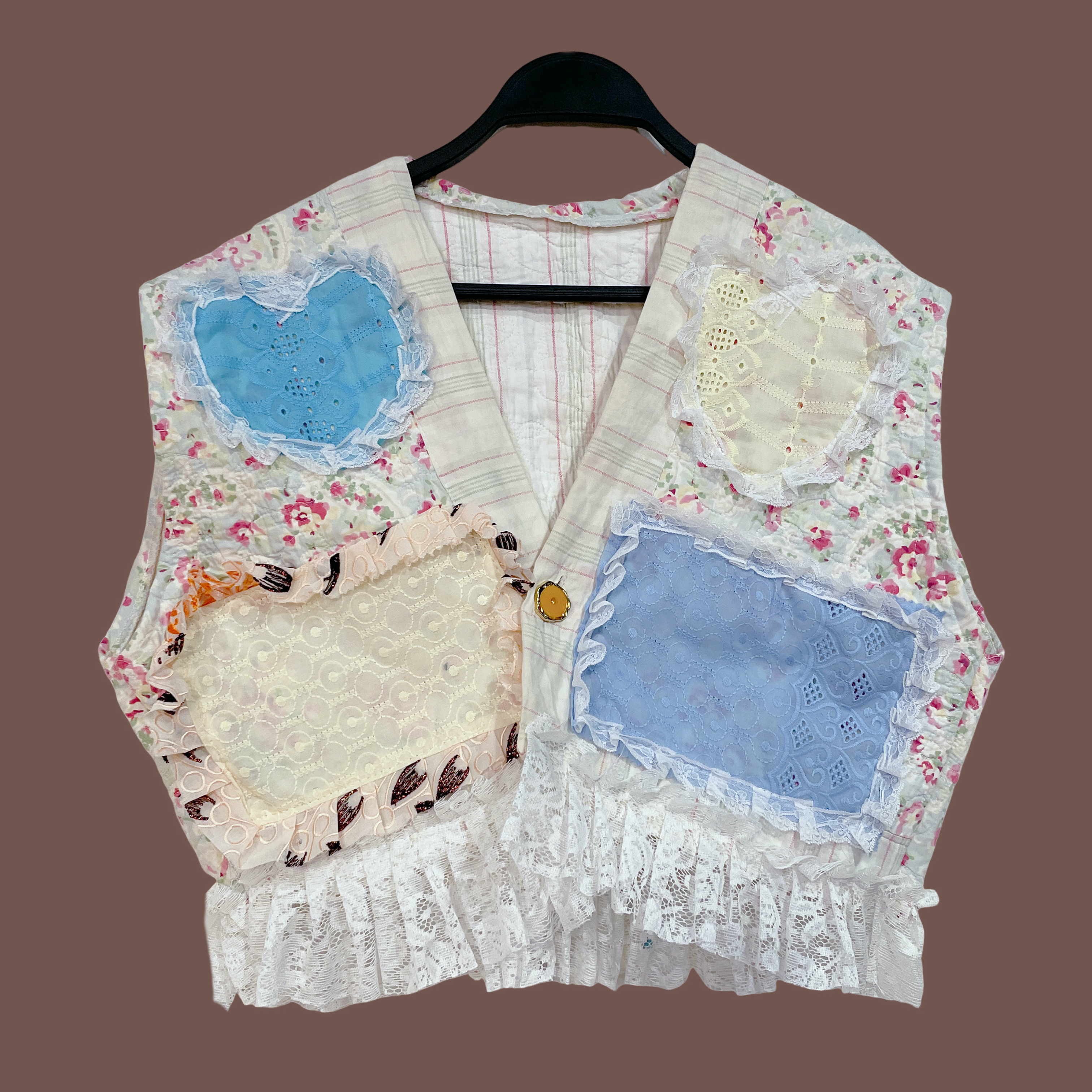 ✿眨眼有電✿ {M0149} 少女拼布蕾絲可愛背心